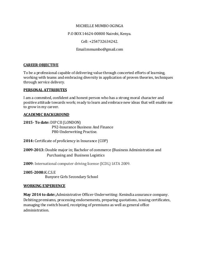 Underwriters work in the insurance field and decide whether an insurance cover application should be accepted. Resume example for insurance underwriter with job experience at a mutual insurance company. Looking for cover letter ideas.